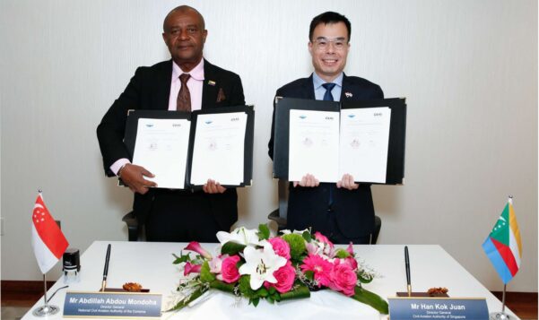 CAAS adds that the MOUs with Cameroon and the Comoros were signed by “Mr Han Kok Juan, Director-General of the CAAS, with Mdm Paule Avomo Assoumou Koki, Director-General of the Cameroon Civil Aviation Authority and Mr Abdou Mondoha Abdillah, Director-General of the National Civil Aviation Authority of the Comoros respectively.”